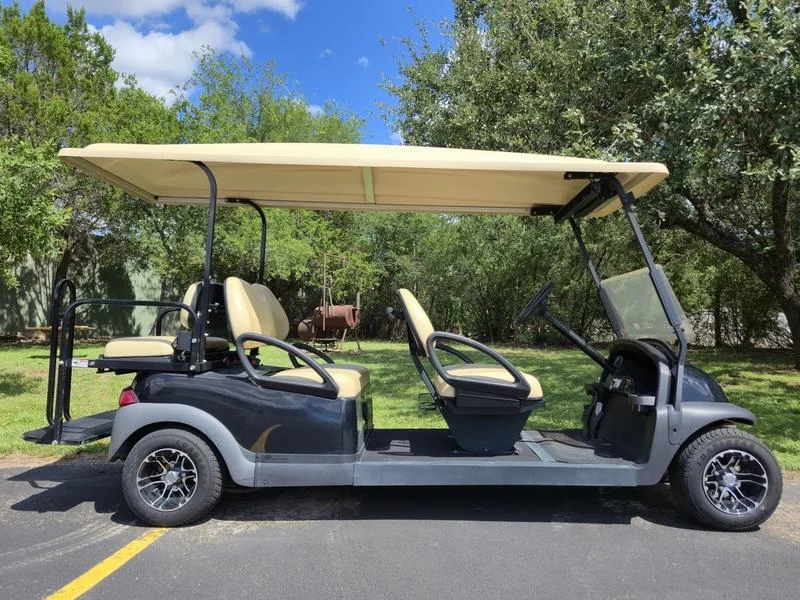 The 2014 CLUB CAR Precedent 6 Passenger – 48V – Black delivers a seamless blend of power, entertainment, and safety in one refined package. With July 2022 batteries, a Navitas control kit, and a Bluetooth soundbar, it’s an upgraded pre-owned model built for group comfort and reliability. Available now at Weller Recreation LLC, this six-passenger golf cart is the perfect combination of performance, value, and enjoyment.