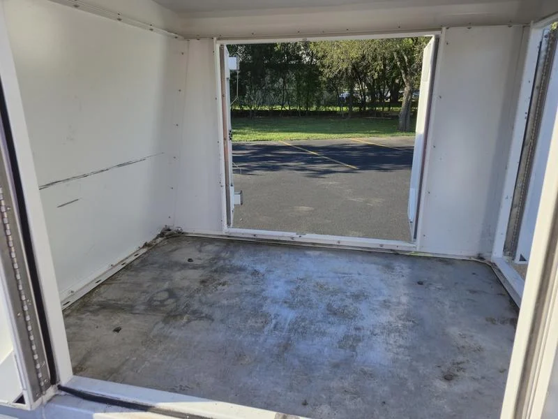 Features rear and side access doors with an automatic lift, designed for easy loading and unloading of tools, supplies, or equipment.