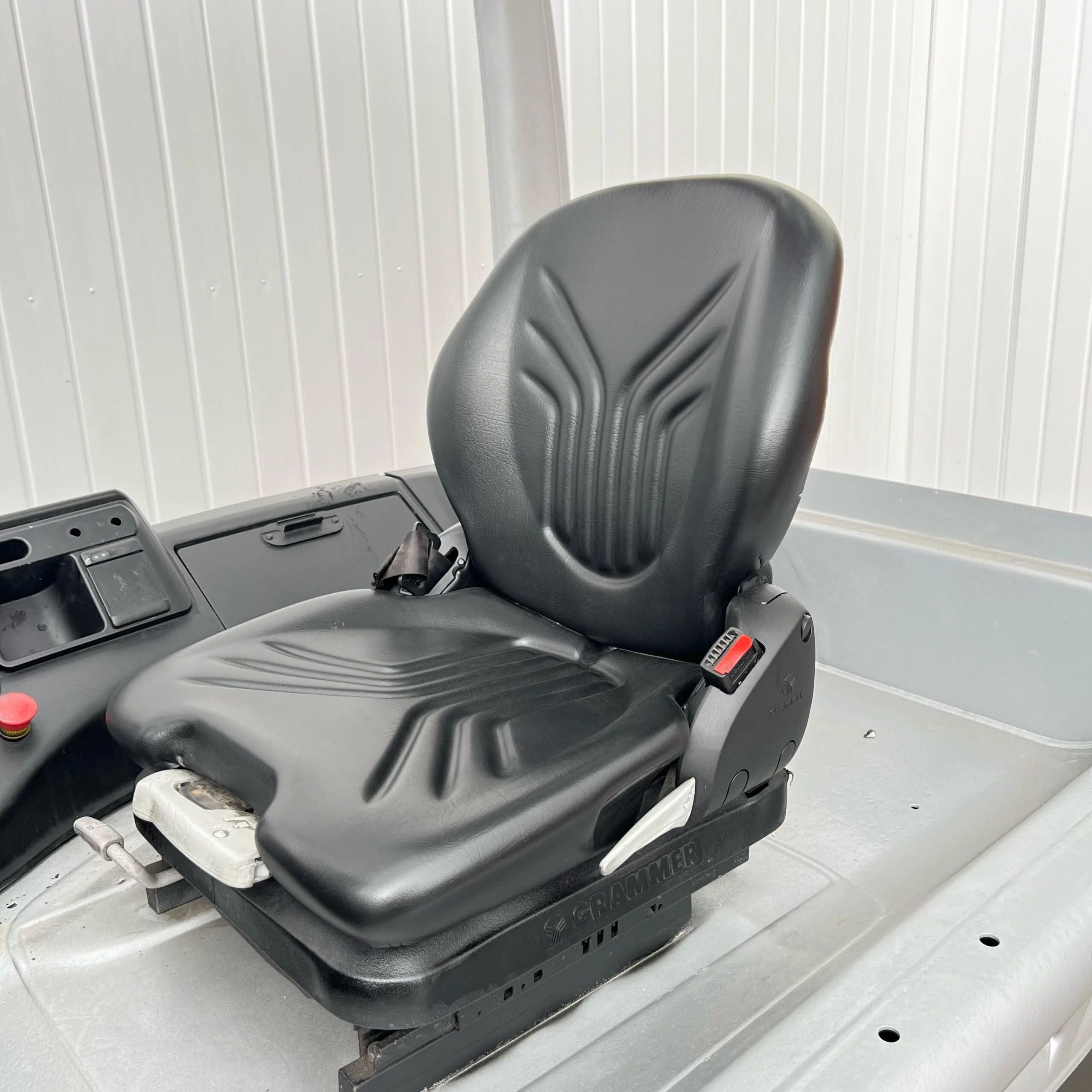 This model features an overhead guard to protect operators in active work environments. Its container-spec build ensures safe, comfortable operation in warehouses, yards, and loading docks. The adjustable seating and intuitive control layout contribute to reduced operator fatigue and improved productivity.