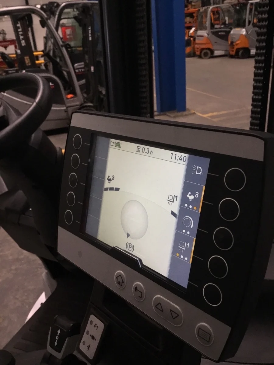 A combination of open mast design, wide viewing angles, and advanced lighting provides clear visibility from every position. The digital display keeps operators informed with live battery levels, error codes, and system diagnostics for efficient, confident operation.