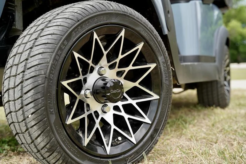 Equipped with 12″ black and alloy wheels paired with Kenda steel-belted radial tires for a sleek look and smooth ride.