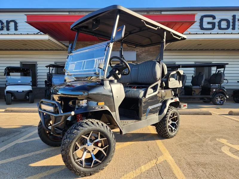 The 2025 Denago EV Nomad XL Black is a high-performance electric golf cart designed for both style and practicality. With its sleek black finish and powerful electric drive system, it provides a smooth and quiet ride while being environmentally friendly. Equipped with advanced features like a 10.1″ touchscreen display, Apple Car Play, and Android Auto, this vehicle is the perfect blend of modern technology, comfort, and rugged capability.