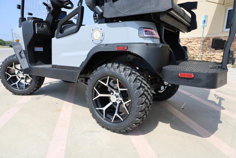The 2.5″ factory lift enhances the cart’s ground clearance, making it ideal for traversing both smooth roads and rugged, off-road terrain. Paired with 23″ all-terrain tires mounted on 14″ wheels, this cart offers optimal traction and durability.