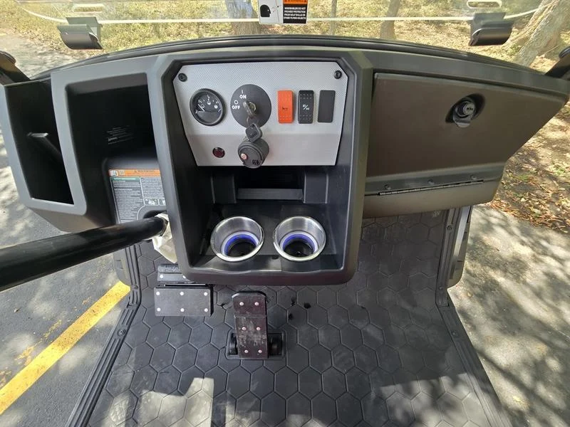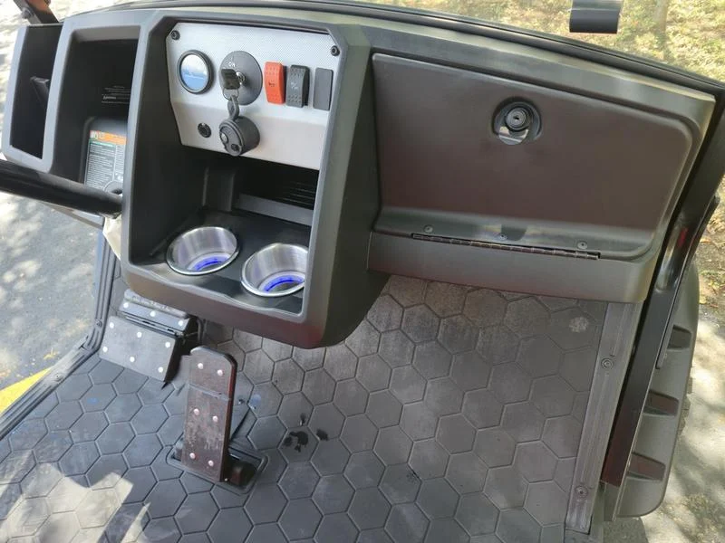 The Express 4 – EFI is powered by a 13.5HP Kawasaki EFI gas engine, offering smooth and dependable performance. Its lifted chassis, paired with 23×10 all-terrain tires and 14″ alloy wheels, gives it the traction and stability needed for mixed terrain. The fuel gauge makes monitoring simple, keeping you confident on longer rides.