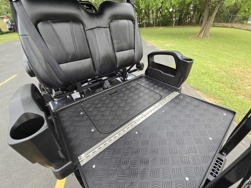 The rear storage compartment offers practical space for carrying essentials, and the onboard charger simplifies recharging wherever you go. Every detail of this golf car emphasizes both form and function.