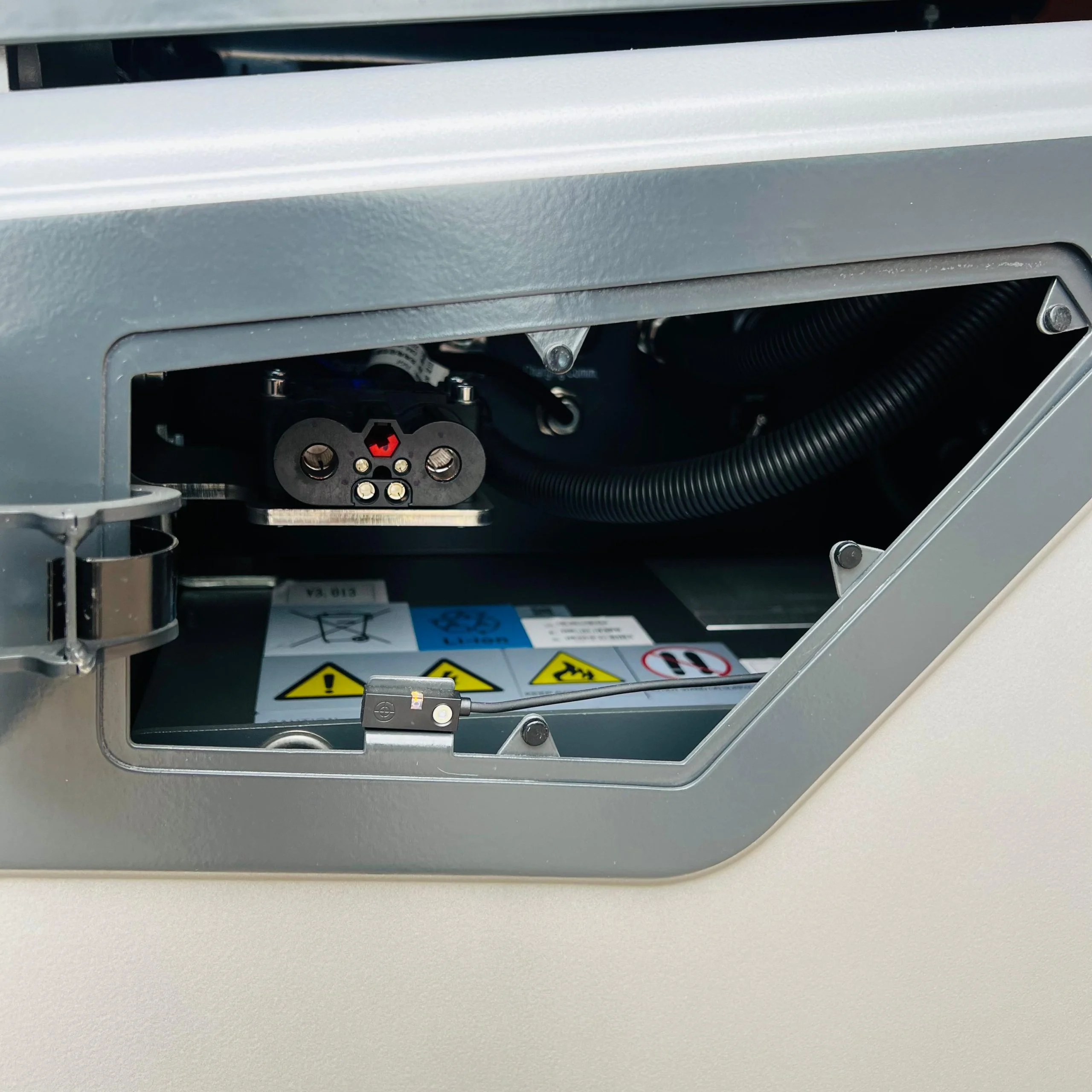 Large all-round windows, narrow roof guards, and a bright color display provide excellent visibility and real-time information such as battery status, driving direction, and operating program. This enhances operator confidence and precision during every task.