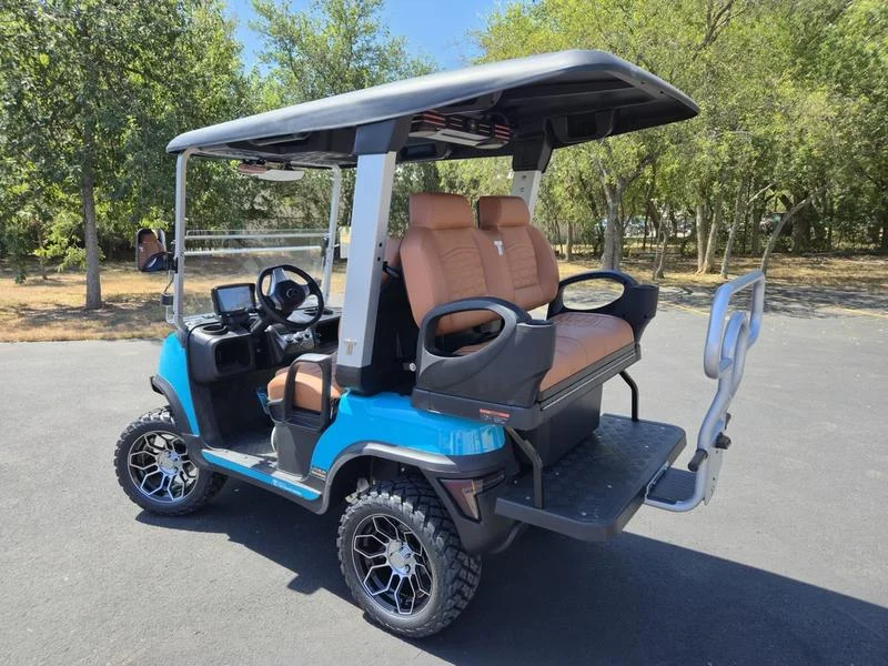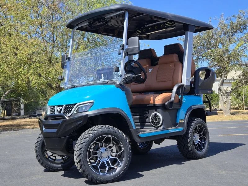 Weller Recreation is honored to present this 2025 TARA Explorer 2+2 Sky Blue — a stunning, all-electric luxury golf cart designed for both comfort and performance. Powered by a 48V Li-ion battery with a 6.3kW AC motor, it offers smooth, quiet, and efficient power. With premium tan seating, a multifunction touchscreen, Apple CarPlay and Android Auto, built-in dash refrigerator, and safety features like seat belts and rearview mirrors, this model combines innovation with elegance for every ride.