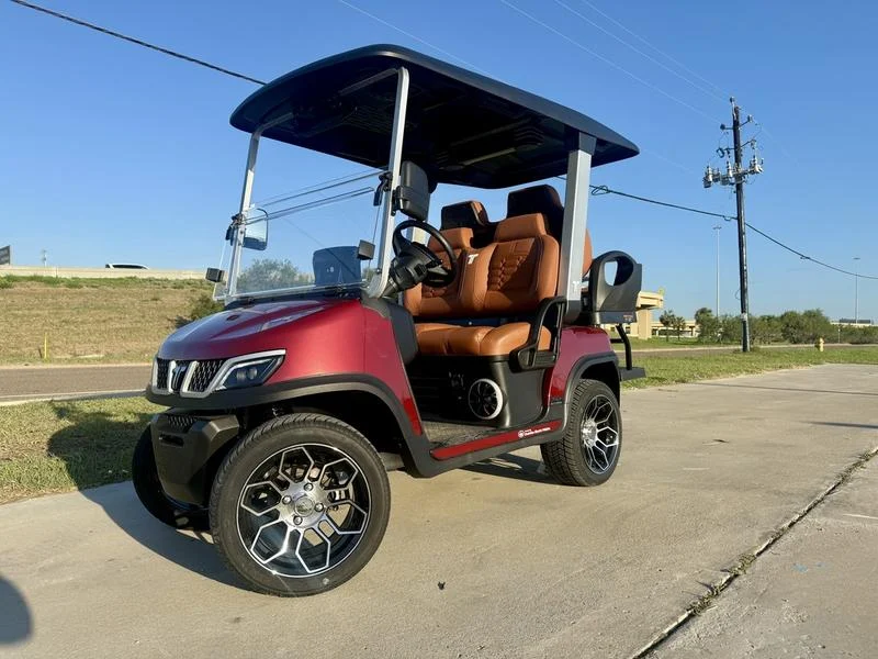 Weller Recreation is honored to present this 2025 TARA Roadster 2+2 Red — a premium 4-passenger electric golf cart engineered for luxury, performance, and style. Featuring a 48V lithium-ion battery paired with a 6.3kW AC motor, this elegant cart provides smooth acceleration, exceptional efficiency, and whisper-quiet operation. With brown premium seats, a multifunction touchscreen, USB-C charging ports, and 14″ alloy wheels, the Roadster 2+2 redefines modern electric driving.