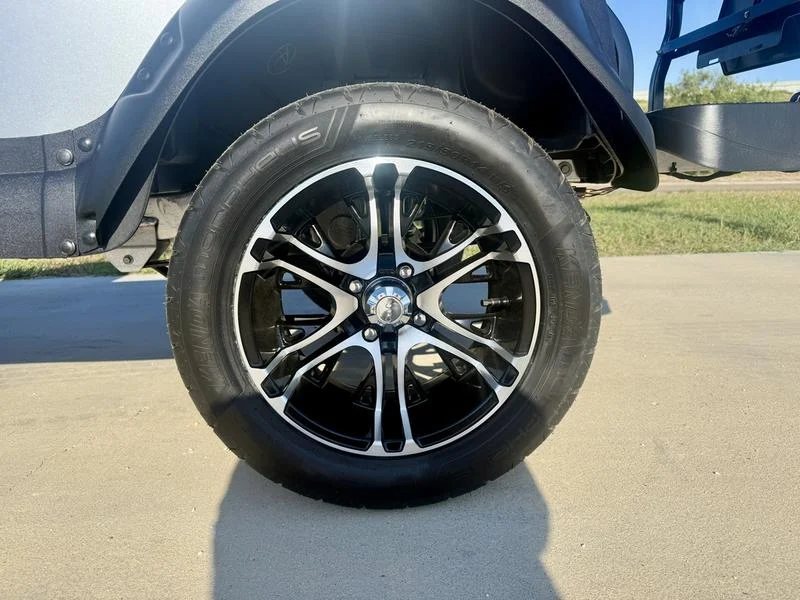 Outfitted with 215/50 turf tires on 14″ alloy wheels, this lifted design provides both stability and a sleek appearance.