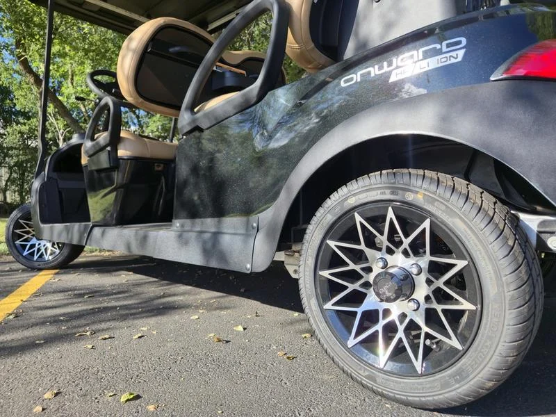 Featuring 205/40 turf tires on 12-inch wheels, this Onward has a commanding presence. Consequently, it offers excellent traction and a smooth ride on various surfaces, from paved paths to fairways.