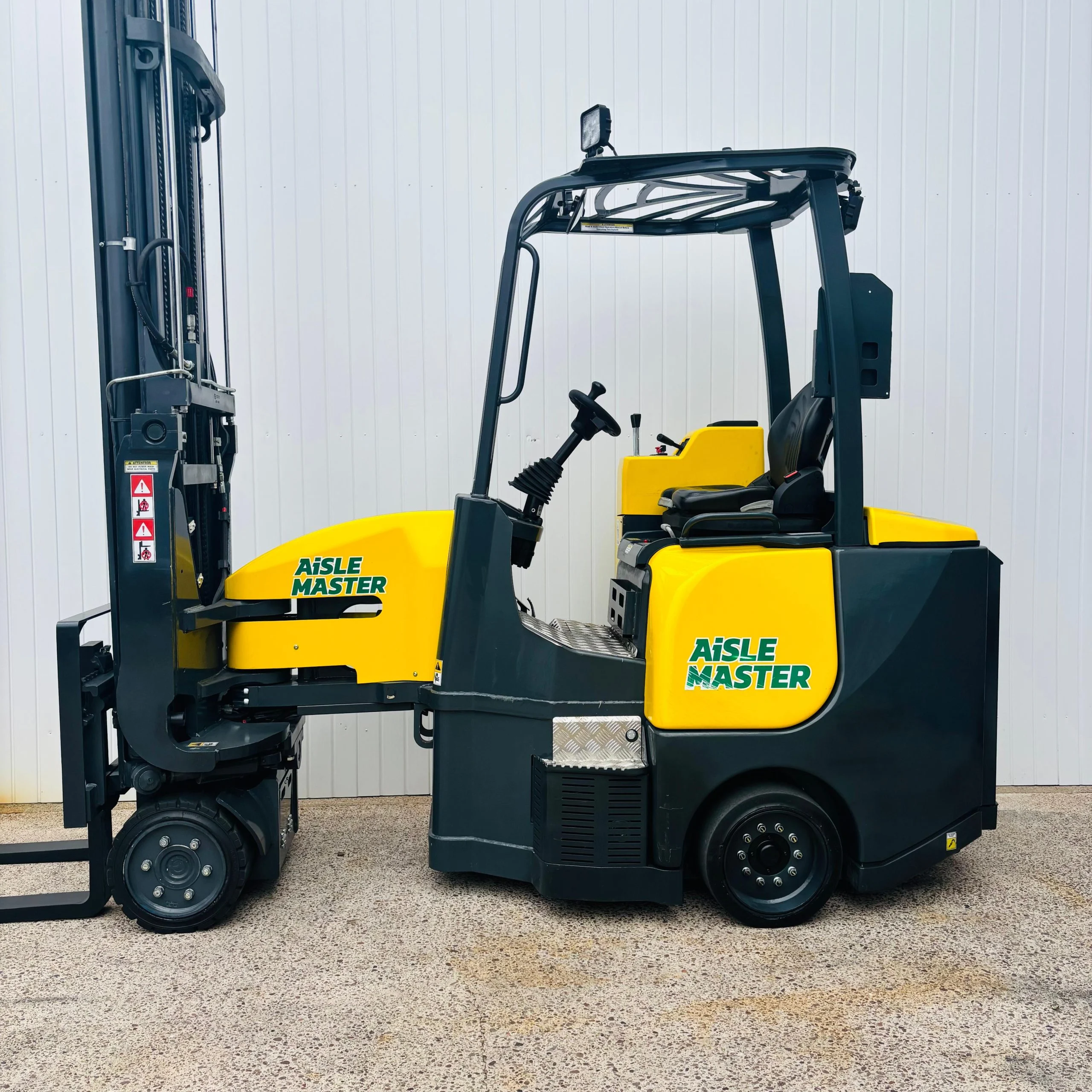 The AisleMaster AM15NE is a preowned articulated forklift designed for high-density material handling in tight warehouse spaces. With an 8050mm lift height and 1500kg capacity, it offers high maneuverability and precision load handling in confined areas.
