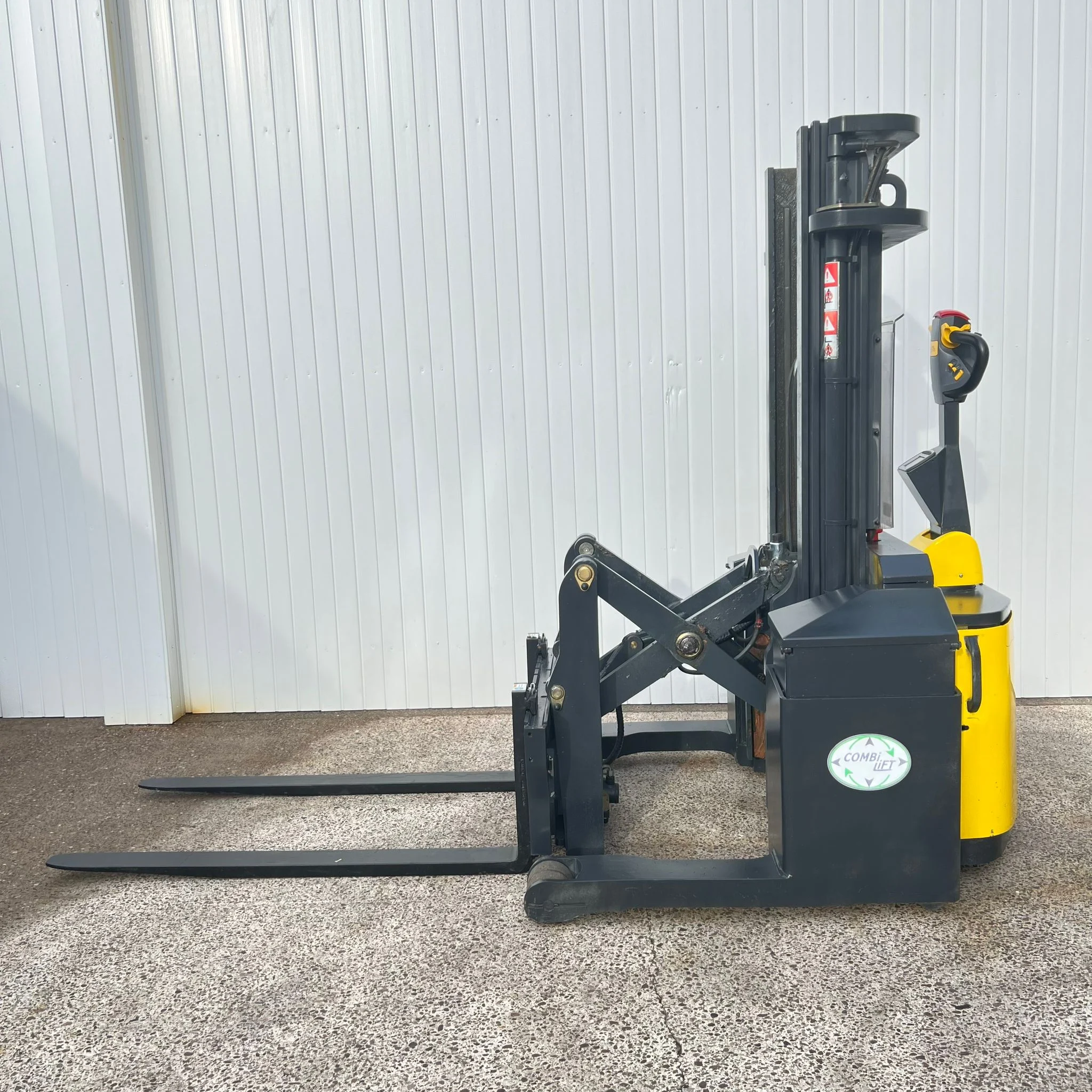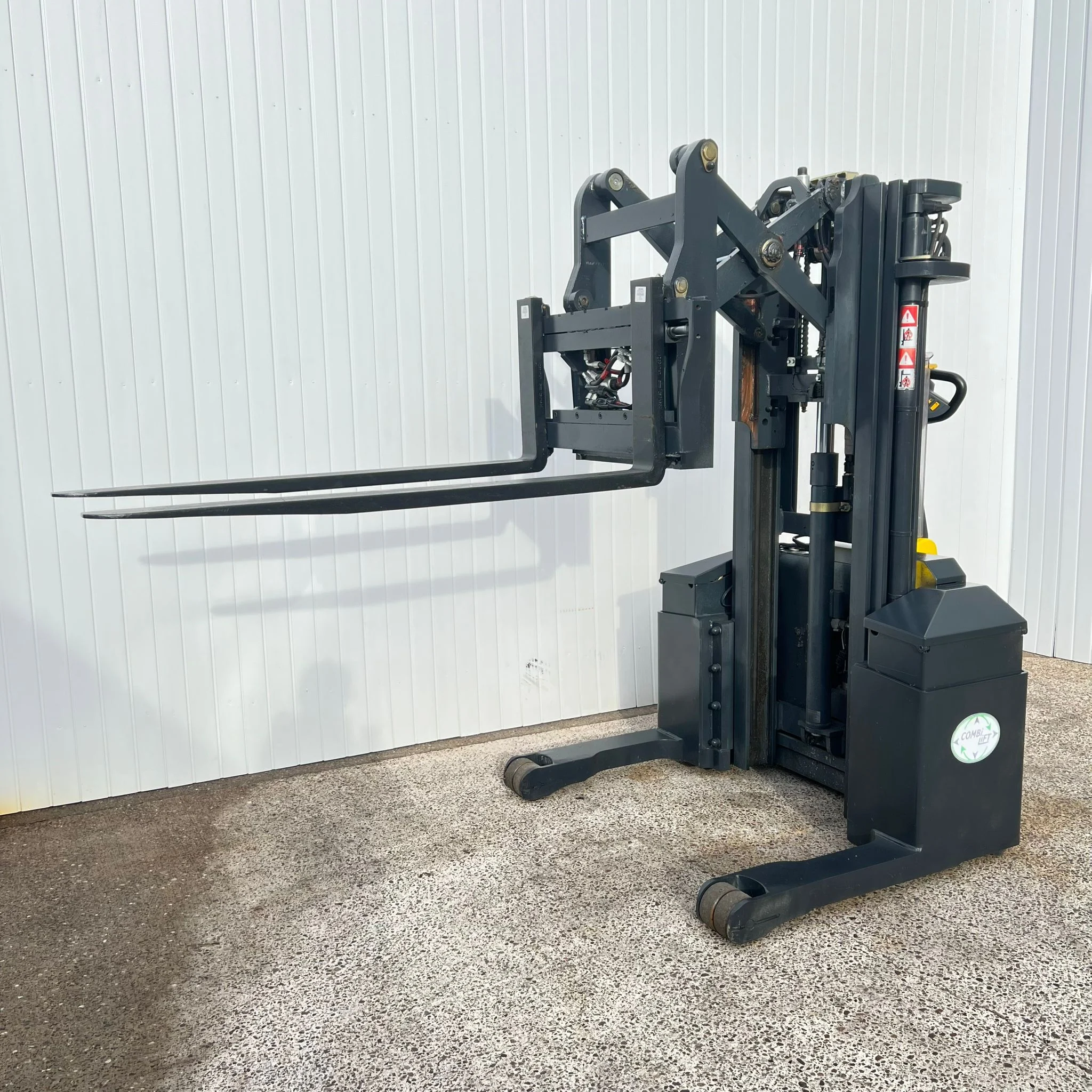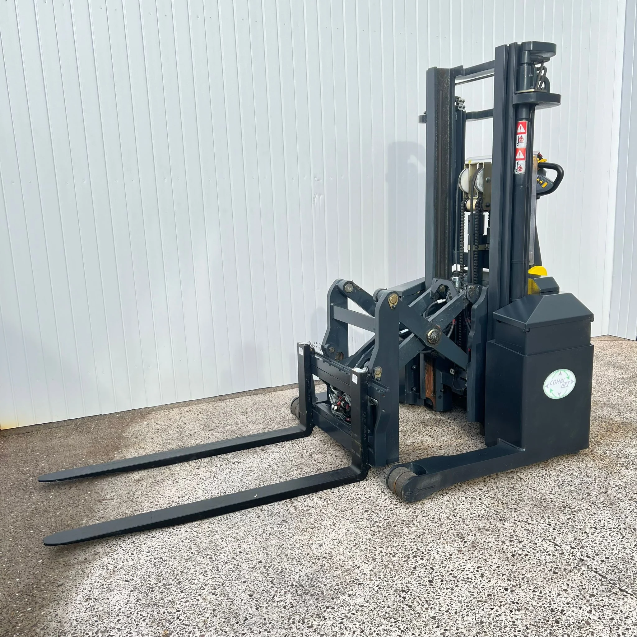 Compact and Durable: The Combilift WR features a robust frame and pantograph carriage designed for heavy-duty use in tight spaces and high-density environments.
