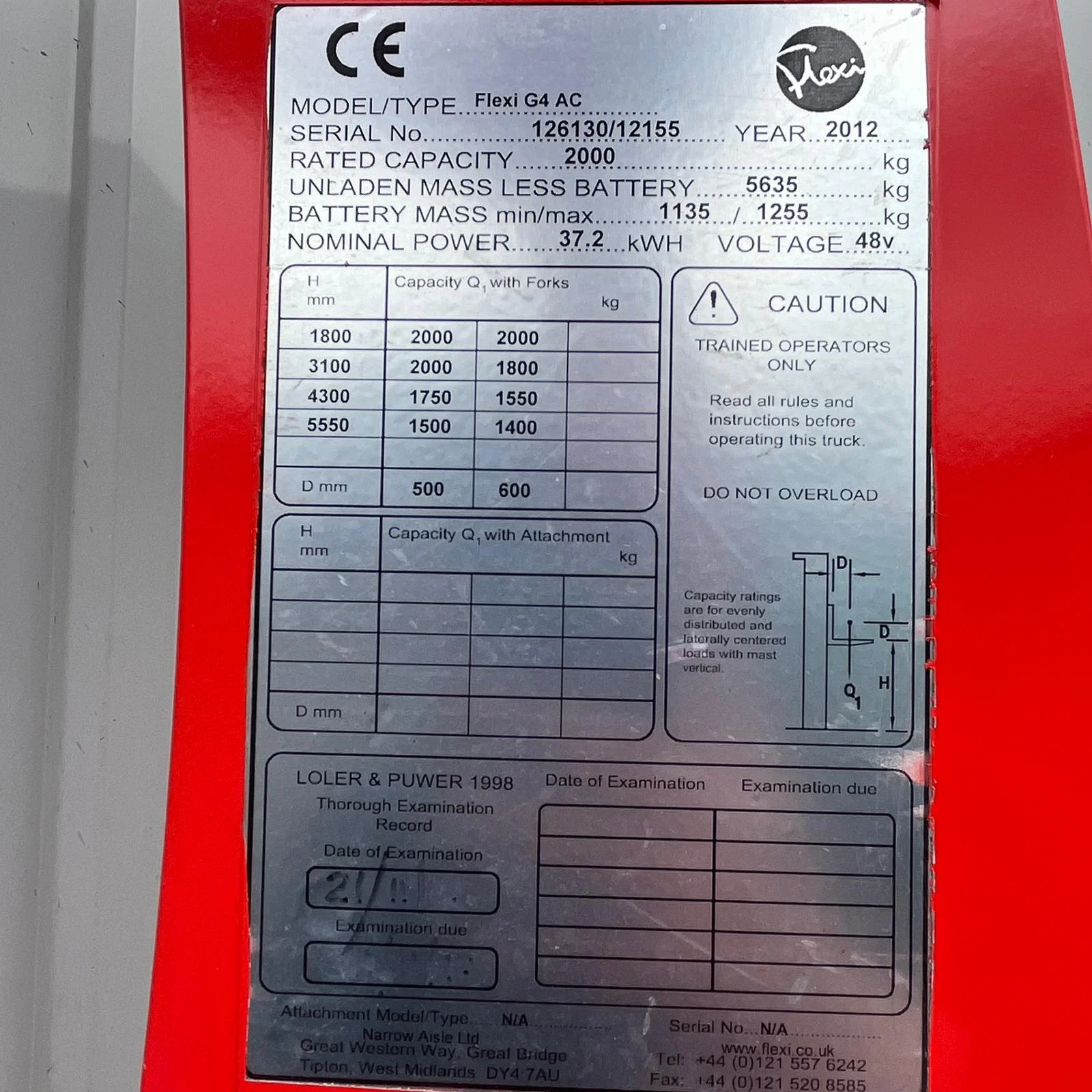 The FLEXI G4 is a preowned 3-wheel articulated forklift designed for high-density material handling in tight warehouse spaces. With a 5550mm lift height and 2000kg capacity, it is engineered for precision load handling and efficient operation in confined areas.