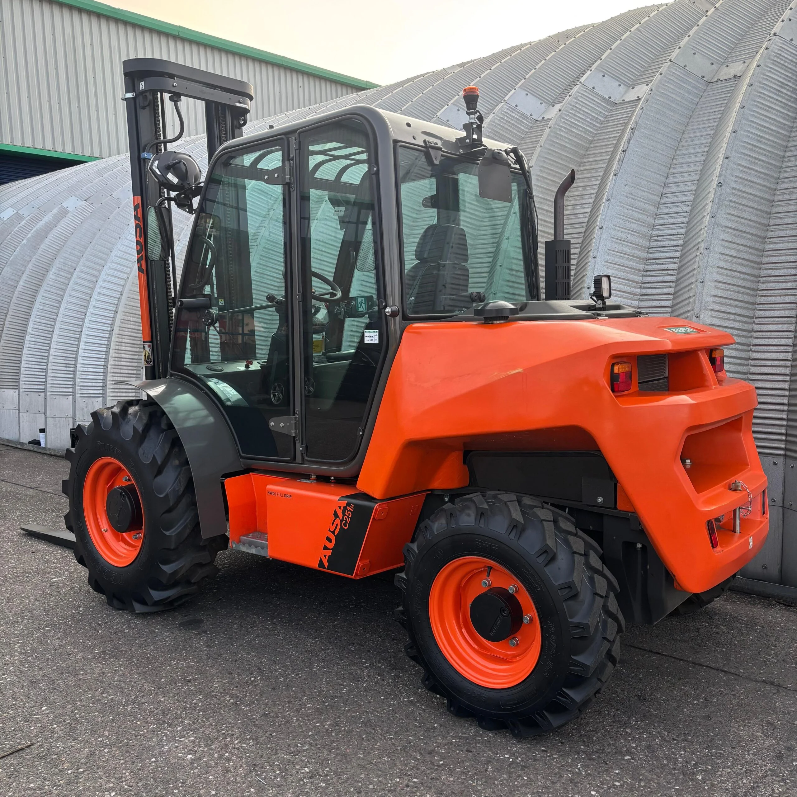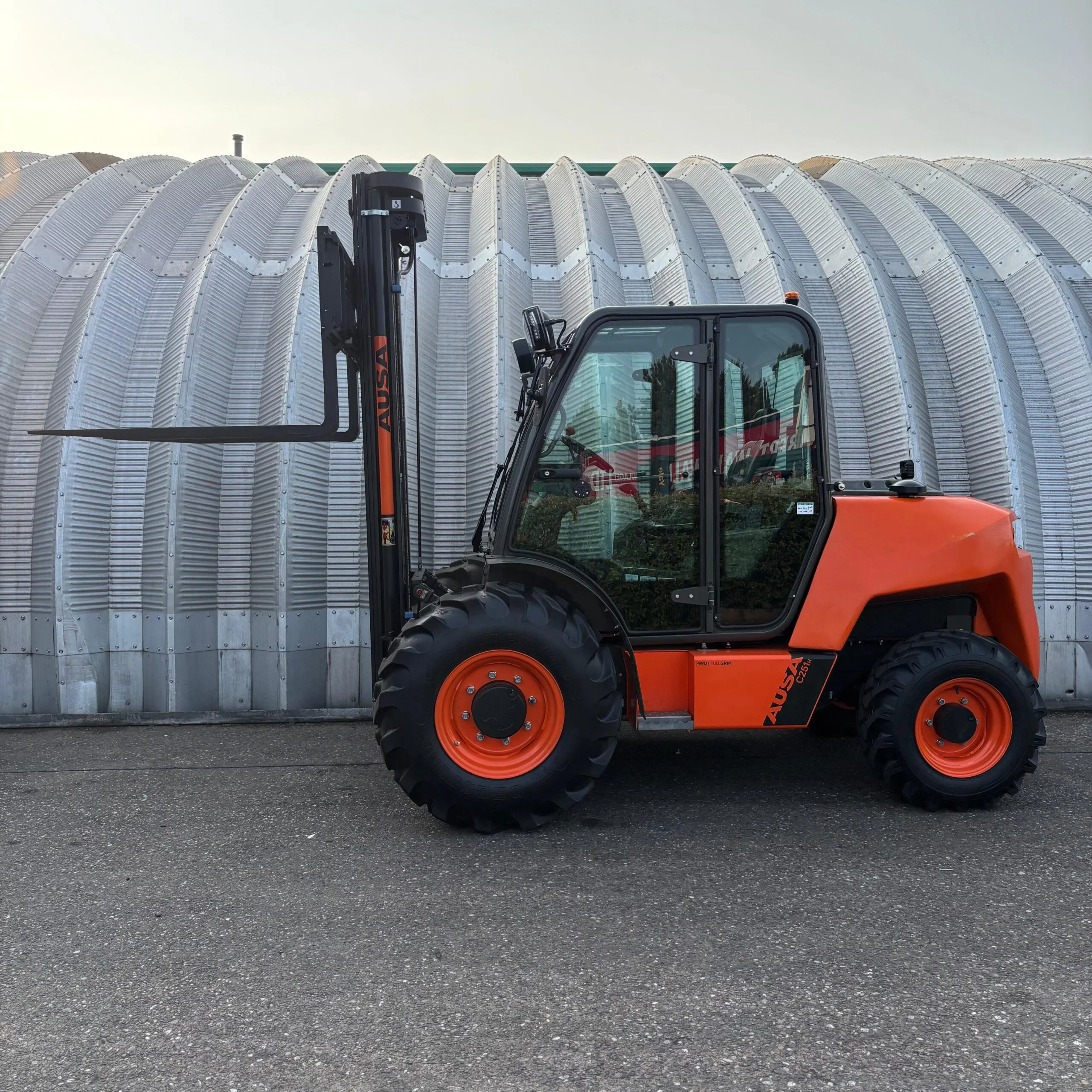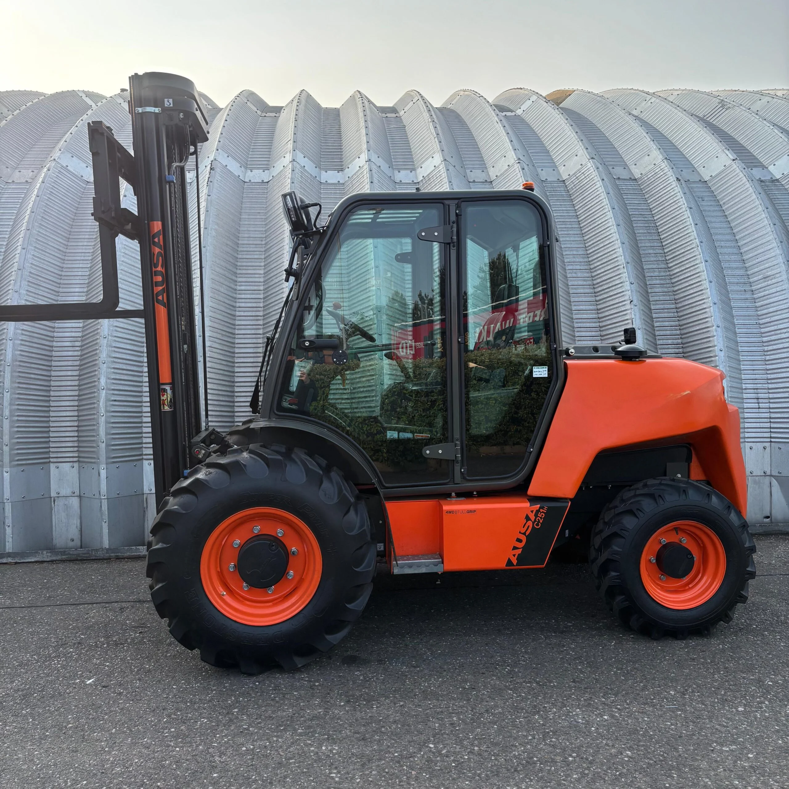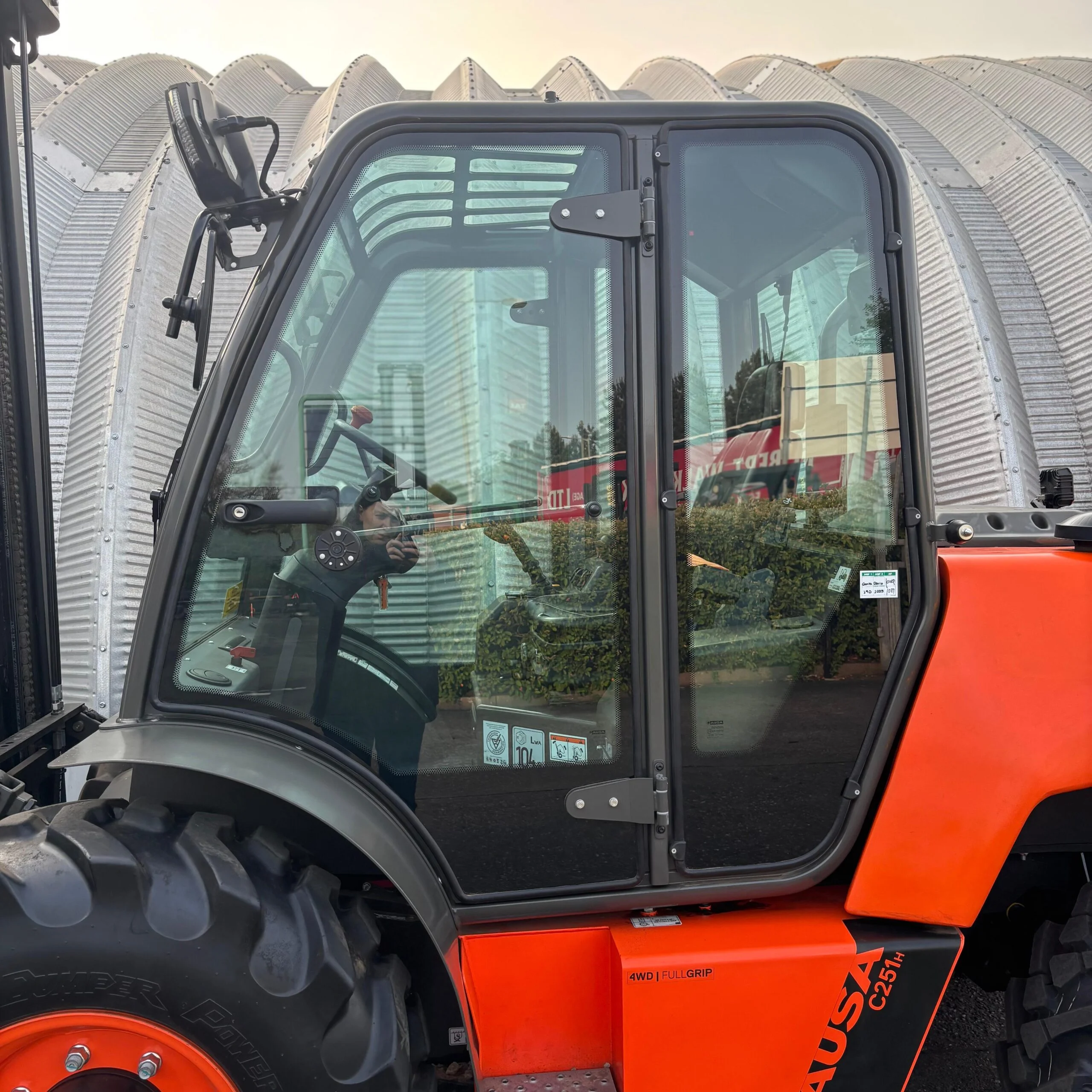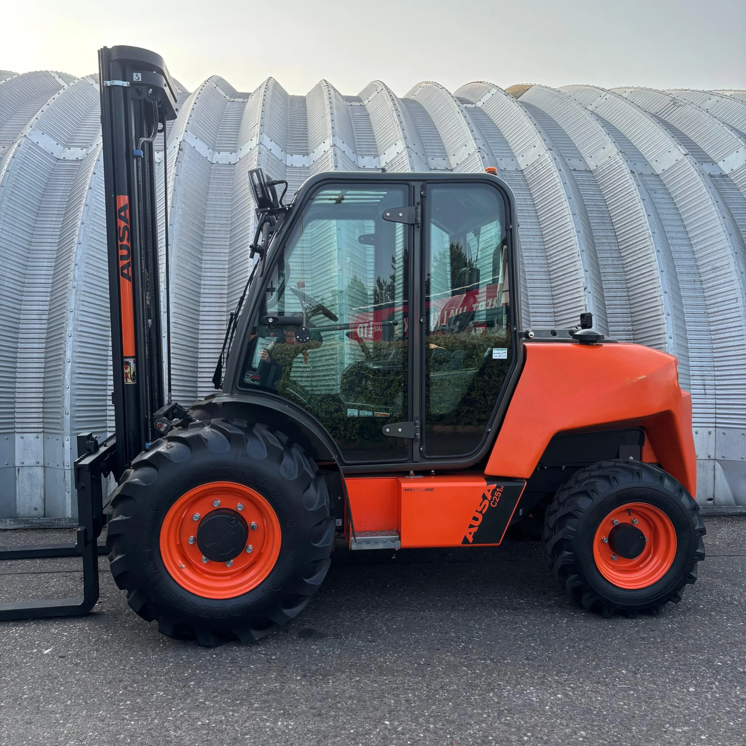Weller Recreation is honored to present this New AUSA C251H 4×4 Rough Terrain Forklift For Sale, a high-performance all-terrain forklift with a 2500kg capacity and 5400mm lift height. This ex-demo model features a full steel cab, Eco Mode, hydrostatic transmission, and 32.6 hours of operation. Designed for tough outdoor environments, it ensures smooth handling with ergonomic joystick control and provides excellent 360º visibility for optimal safety and productivity.