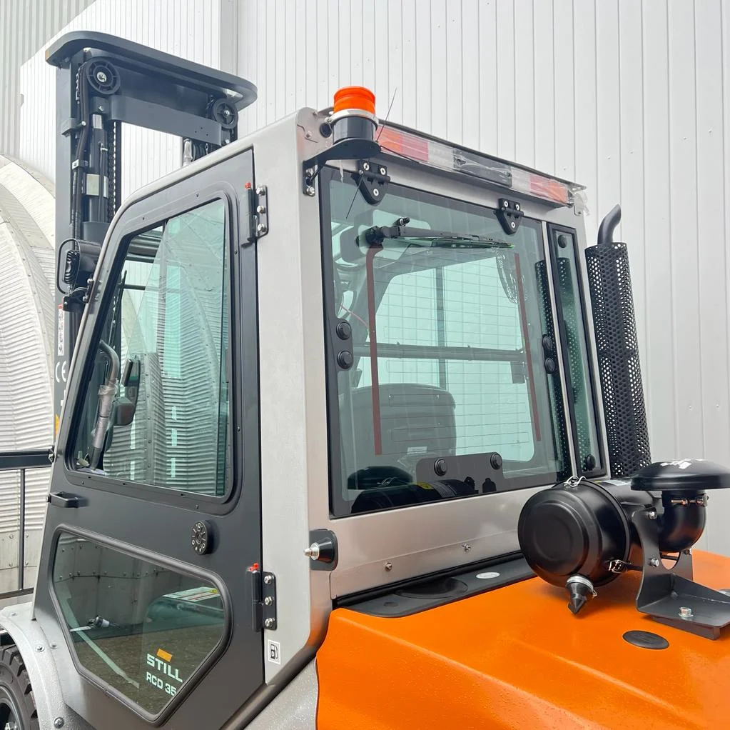 The New Still RCD35 Diesel Forklift for Sale offers exceptional performance and operator comfort for industrial environments. Equipped with a DOOSAN D24 engine, full cab, and 3-stage full free lift mast, this forklift is designed for heavy-duty lifting and precise load handling.