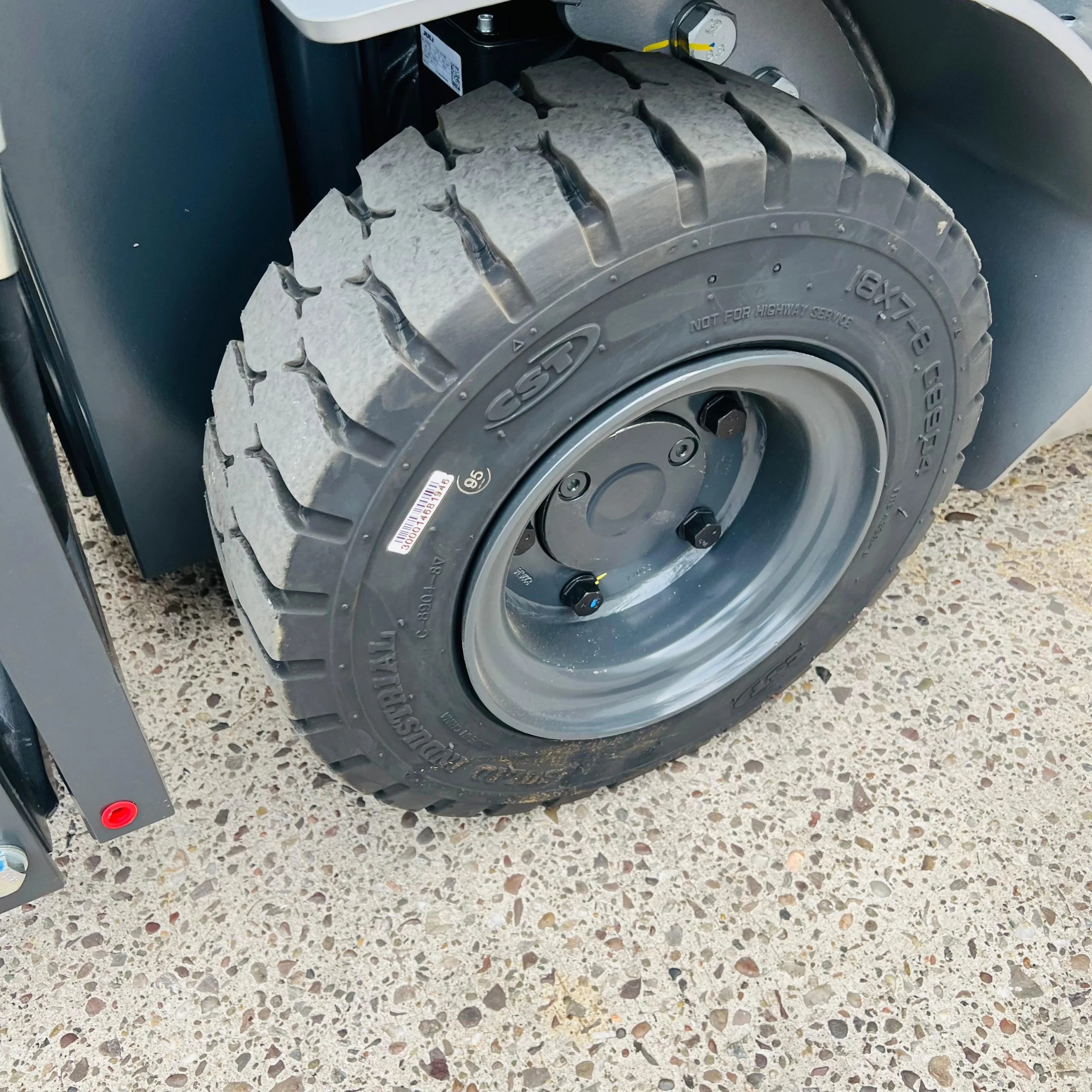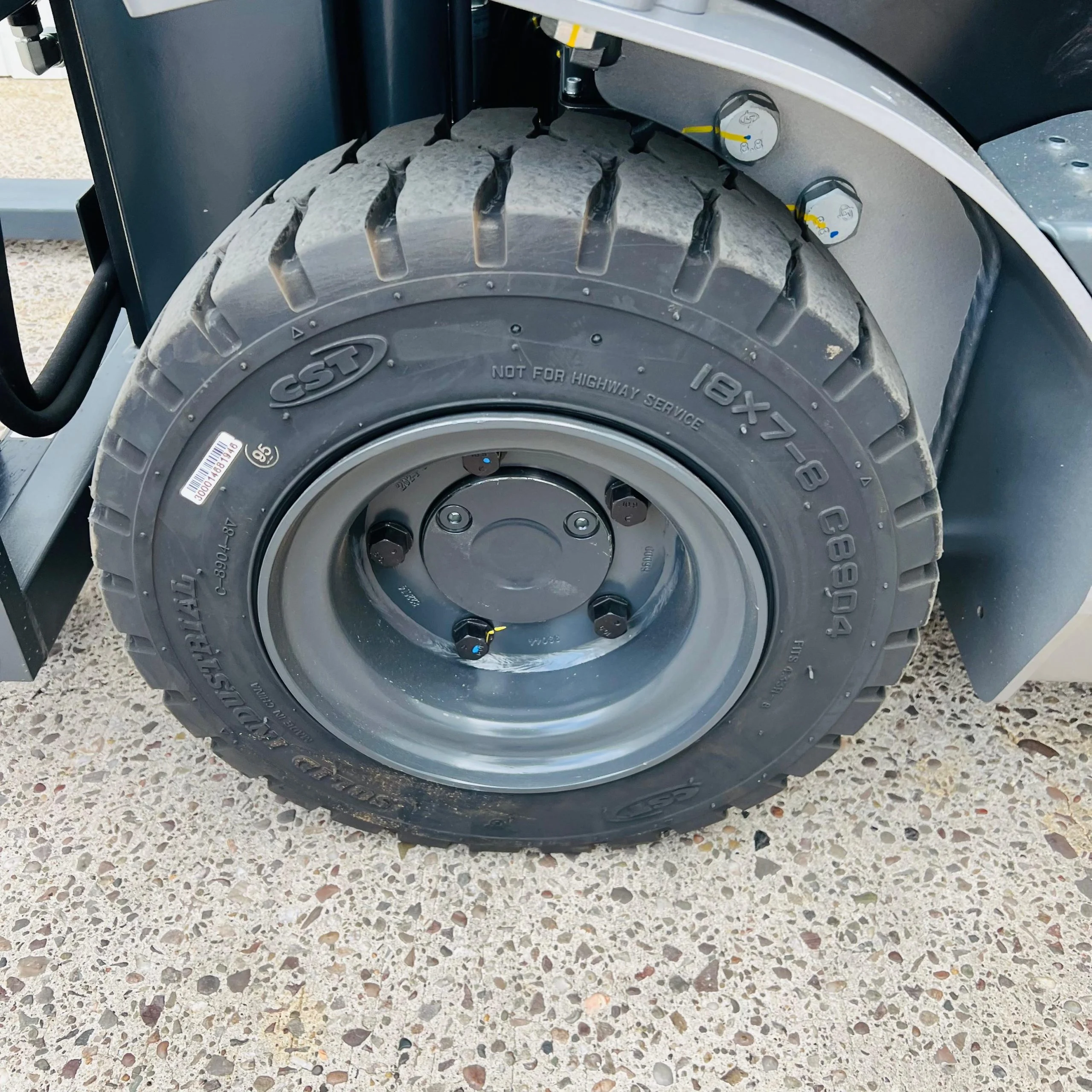 The hydraulic controls allow for sensitive load handling, while the 3-stage full free lift mast provides flexibility in loading and unloading tasks. The forklift’s curve speed control system ensures safe, controlled driving around corners and turns.