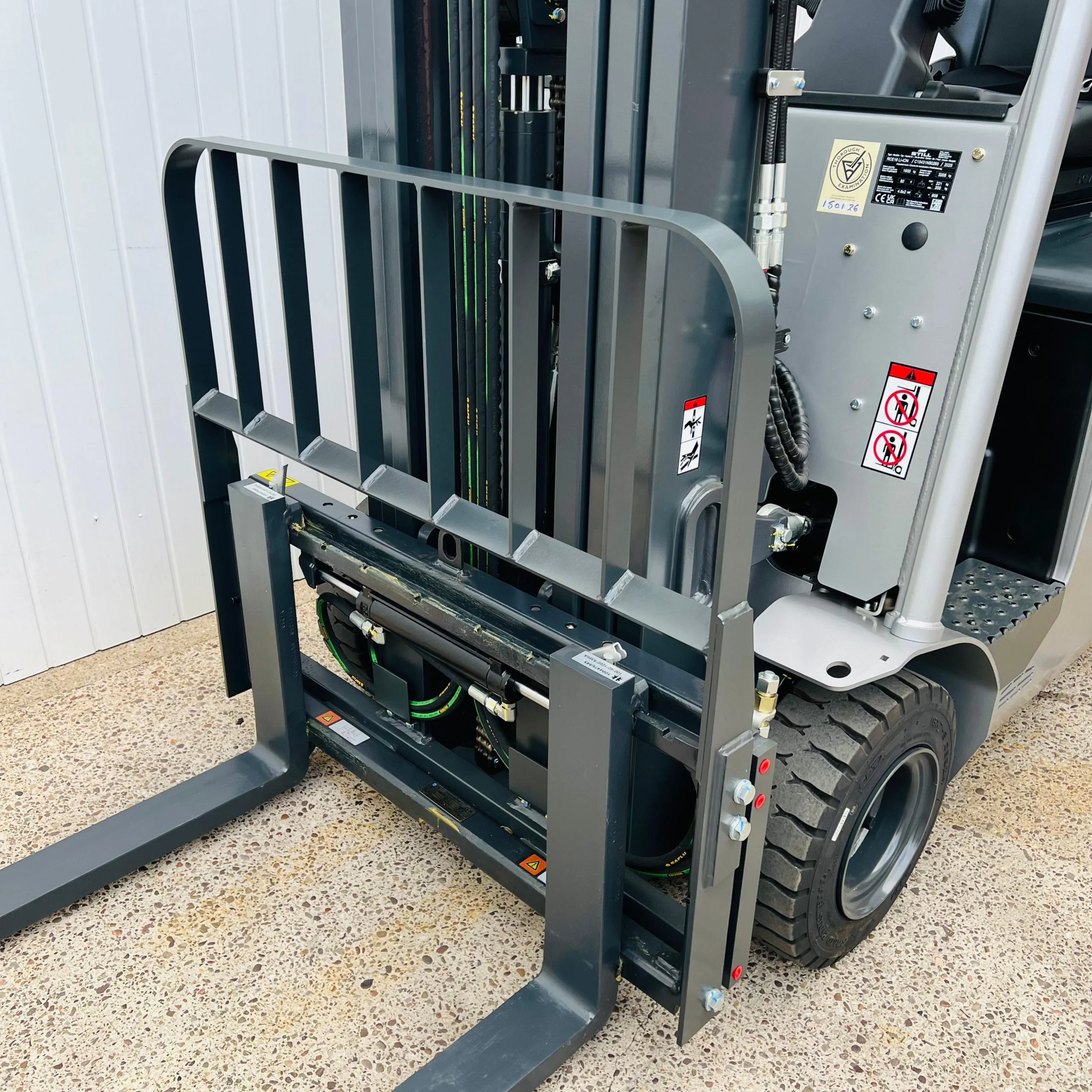 A sustainable electric forklift with lithium-ion battery technology, designed for efficient and low-maintenance operation.