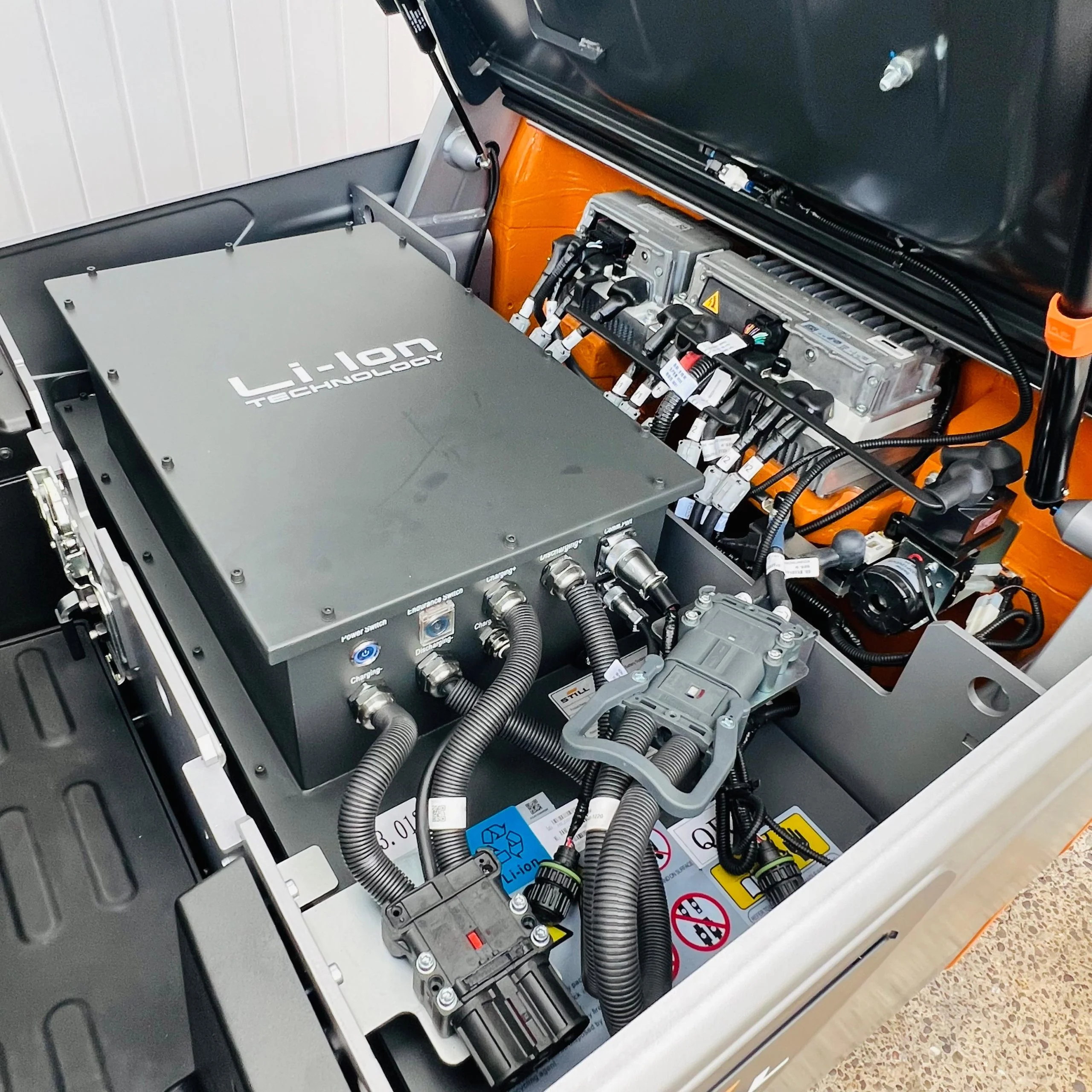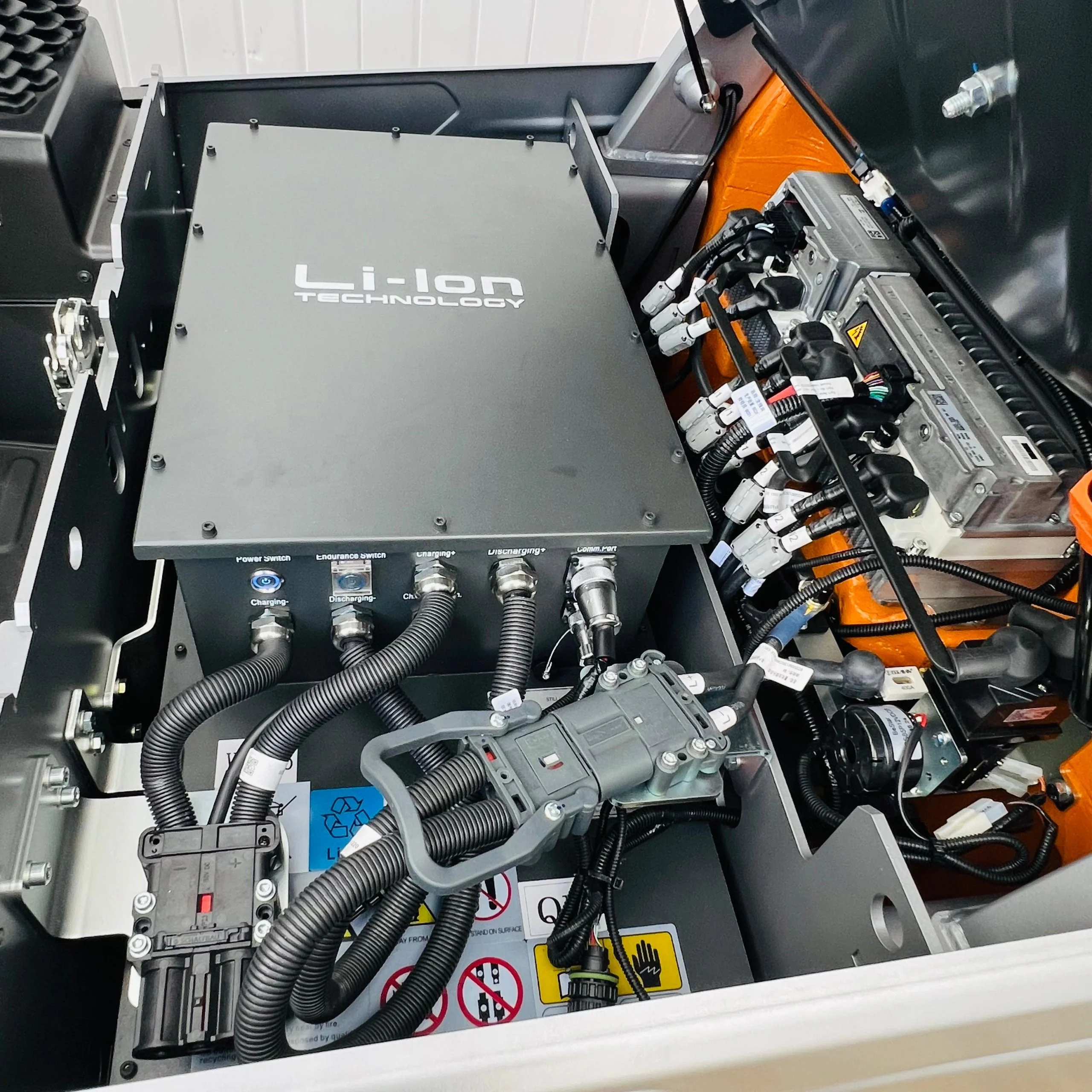 The 80V lithium-ion battery provides fast interim charging, with lateral quick-charging access for seamless operation. The forklift is equipped with a 4.6x2kW motor, offering smooth, powerful performance for both indoor and outdoor use.