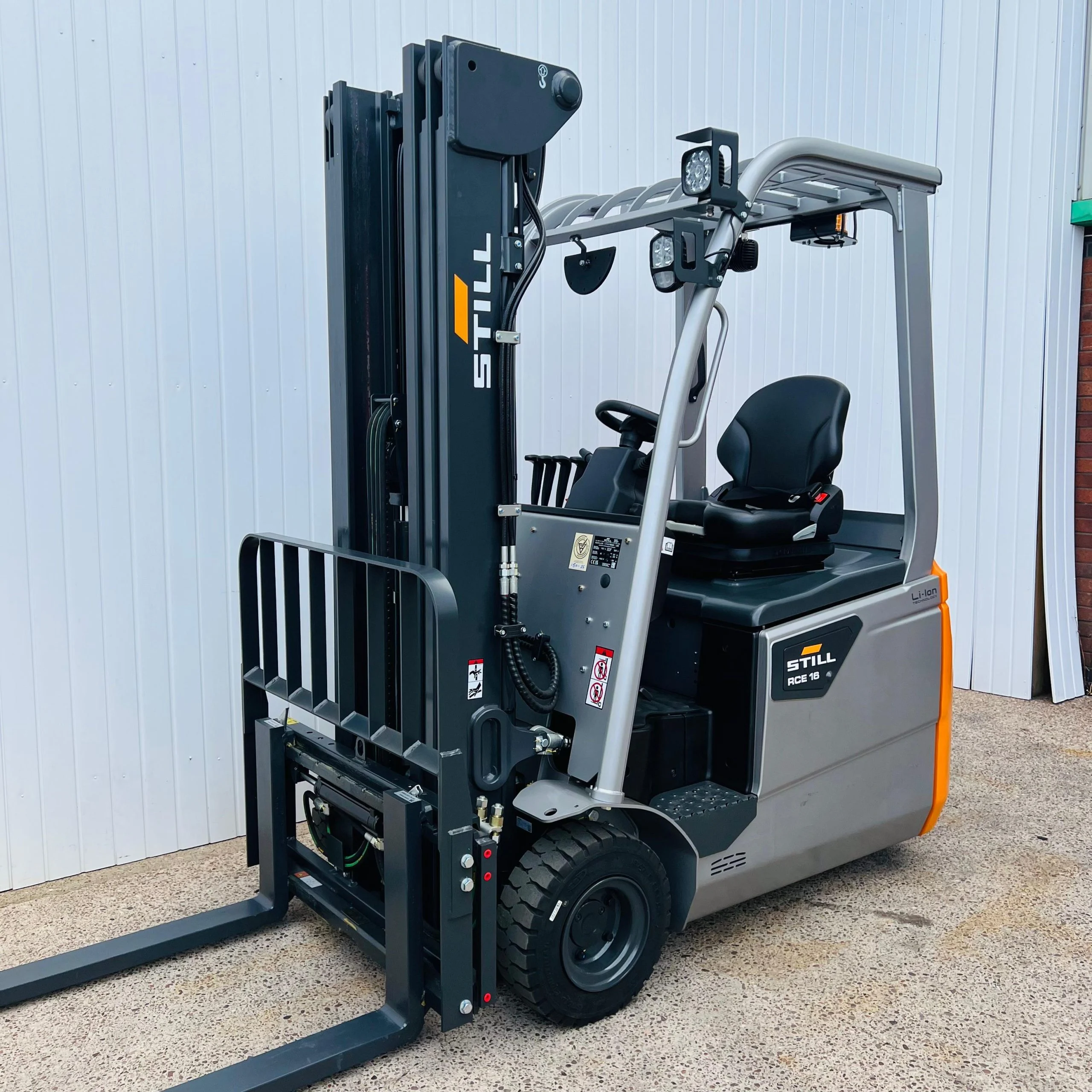 The STILL RCE16 Lithium Forklift is a high-performance 3-wheel electric forklift designed to deliver precision, stability, and efficiency in tight workspaces. Built with lithium-ion technology and a focus on ergonomic comfort, this forklift is perfect for material handling in warehouses, distribution centers, and retail operations.