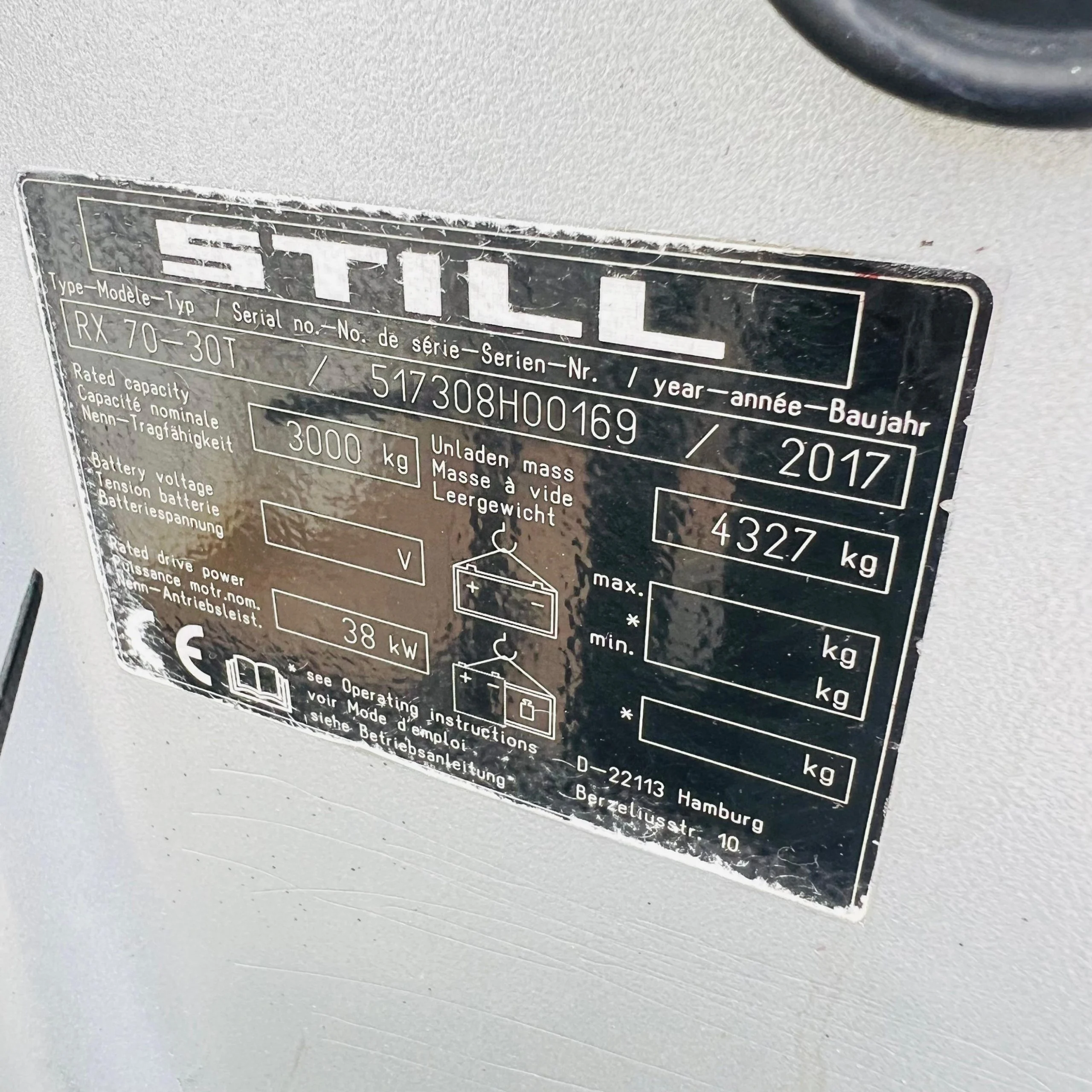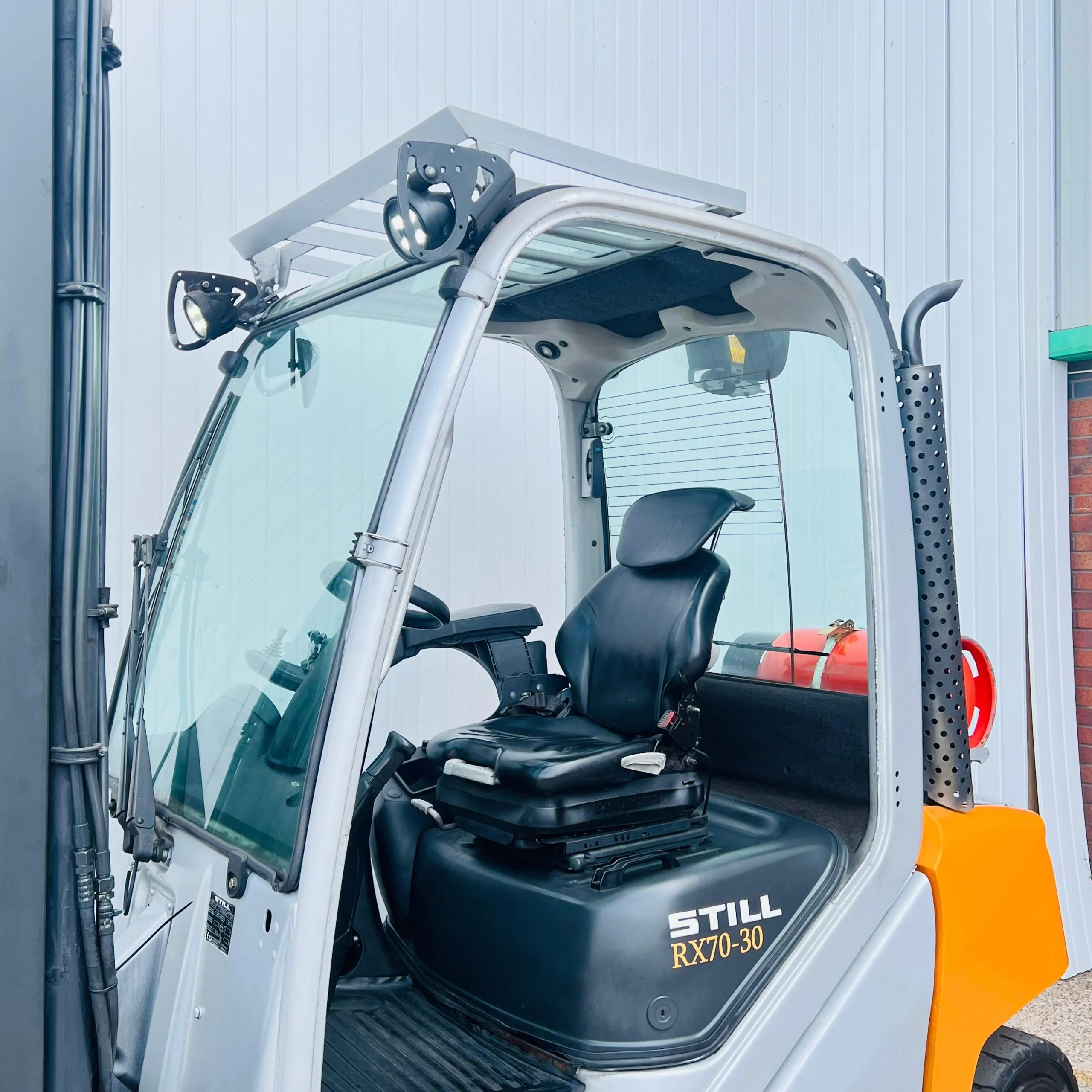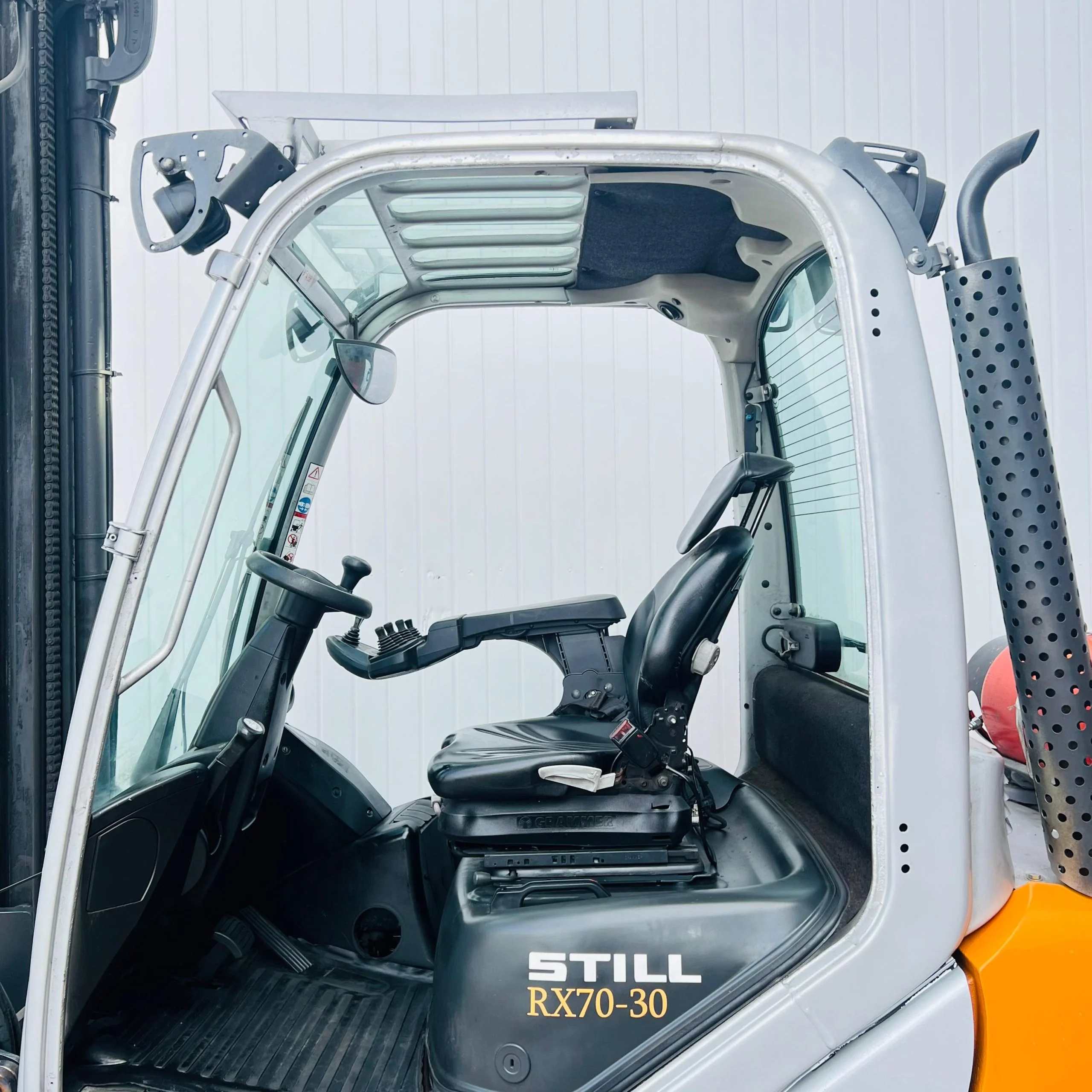 The STILL RX70-30T Gas Forklift for Sale is a high-capacity gas-powered forklift built to withstand heavy workloads in logistics yards, warehouses, and industrial environments. With a 3-tonne lifting capacity and a 4550mm lift height, it combines brute strength with smooth handling and ergonomic operator control.